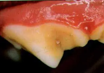 Abscessed tooth roots are a form of periodontal disease and may start with a tooth fracture. Any tooth can become infected; however, the maxillary fourth premolar teeth (carnassial teeth) are a common site of occurrence. Symptoms of a tooth root abscess include the following: