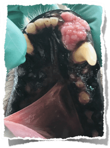 It is important to note that the above clinical signs may also be seen with periodontal disease. Oral pathology signs quite frequently overlap, necessitating the importance of an exam with a veterinarian or a board-certified veterinary dental specialist.