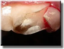 Appearance after treatment. Restorations are visible (arrows) and the fracture lines have all been smoothed.