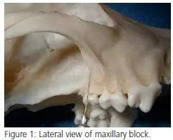 Maxillary block (Figures 1 and 2) Area blocked: This block may also be accomplished via the infraorbital canal as detailed in lat month’s newsletter. All dental, bone, and soft tissues of the entire maxillary quadrant, including the soft and hard palatal structures on that side.
